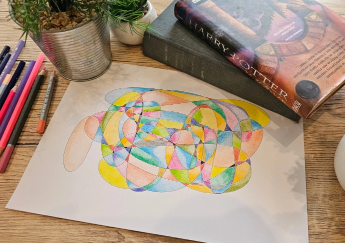 A Lélekvonalnál a fraktálrajzolás egyszerű, mégis mély módszerével segítünk visszatalálni önmagadhoz. Csukott szemmel induló, intuitív vonalból vetjük papírra mintáinkat, majd színekkel és formákkal dolgozunk tovább – így a káoszból lassan harmónia születik. Nincs hibás rajz; minden alkotás egy egyedi történet rólad, a jelen pillanatodról, a változásodról.